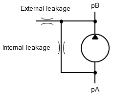 Both internal and external leakage depend on the adjacent pressure difference. The parameter Nominal volume flow refers to the flow at Port A (suction side).