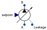 The component VariableFlowPump constitutes a model of a flow source in which the delivery is calculated from the given nominal flow, the input signal, the leakage, and the suction pressure.