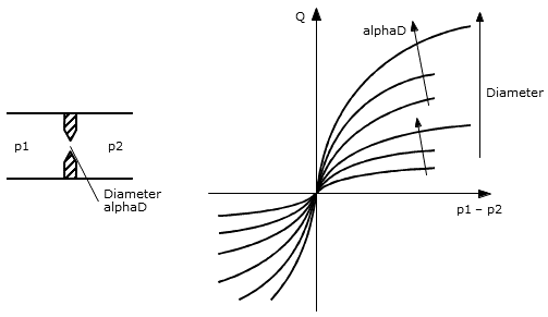 It is parameterized by the geometric parameters Diameter and Flow Coefficient alphaD.