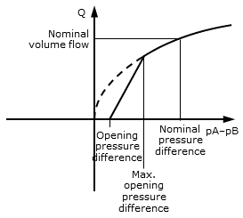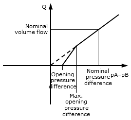 fluidPortA.p > fluidPortB.p + Opening pressure difference.