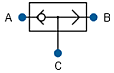 The component ShuttleValveNoFlow is the model of a changeover valve that has no flow through the valve, but only transmits the pressure. It connects port C (the middle port) with the port that has the highest pressure.
