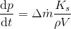 According to this model, the temporal change in pressure is proportional to the difference in incoming and outgoing mass flows, multiplied with the bulk modulus and divided by the density and volume of the fluid in the respective component.