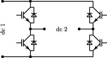 The H bridge is a four quadrant DC/DC converter. It consists of two single phase DC/AC converters which are controlled differently; see Fig. 1.