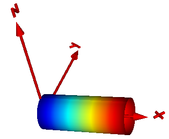 Model PipeWithScalarField visualizes a pipe and a scalarfield along the pipe axis. The latter is shown by mapping the scalarfield to color values with a color map and utilizing this colorat the perimeter associated with the corresponding axis location.Typically the scalar field value is a temperature, but mightbe also another quantity.Predefined color maps are available fromMultiBody.Visualizers.Colors.ColorMapsand can be selected via parameter "colorMap".A color map with the corresponding scalar field values can be exportedas vector-graphics in svg-format with functionMultiBody.Visualizers.Colors.colorMapToSvg.Connector frame_a of this component is located in the center of thecircle at the left side of the pipe and the pipe axis is orientedalong the x-axis of frame_a, see figure below in which frame_a is visualizedwith a coordinate system:
