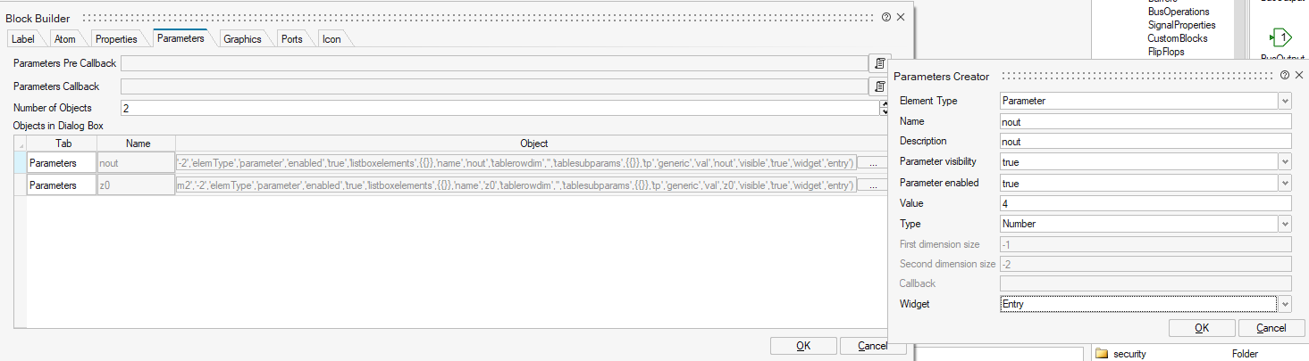 In the Parameters tab, click the ... to edit the properties of the nout parameter and change its Type to Number with a Value of 4.