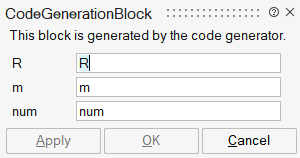 Applying code generation to the block exposes the parameters as expected: