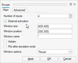 Scope blocks have a Window options parameter. Select