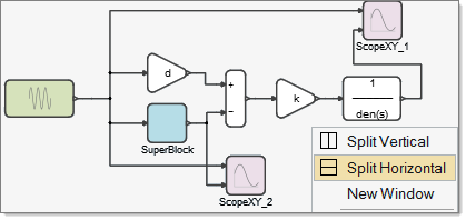 For this option Do this Resize an active window Select and move the horizontal or vertical separators as needed to make the window larger or smaller. Detach or float a window Right-click, and from the context menu, select Show in new window. A duplicate of the current view is displayed in a fully detached window. Note that when a simulation is performed, scopes are frequently used to display results. Both scopes and plots, which can be created from OML commands, are displayed in floating windows.