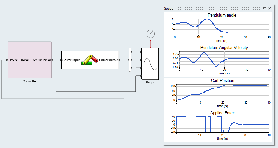 Figure 2. Co-simulation example of a swinging pendulum