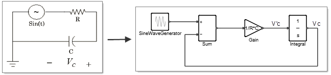 The process of modeling dynamic systems includes assembling blocks that exchange data through a network of input and output ports. Though possible to model physical systems with the basic Twin Activate blocks, the process requires translating into explicit form the implicit equations that represent the behavior of the physical components. In addition, the resulting diagrams have an unconventional appearance compared to component-based diagrams as you can see in the following figure.