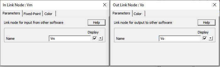 The PSIM block in Twin Activate uses the Link nodes to establish interface between PSIM and Twin Activate. In Link Nodes receive values from Twin Activate, and Out Link Nodes send values to Twin Activate. Multiple In/Out Link Nodes can be used in a circuit to exchange values between PSIM and Twin Activate.