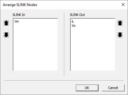 Figure 5. Changing the order of inputs and outputs. Arrange the order of the In nodes and Out nodes to be the same as how the input/output ports would appear in the PSIM block in Twin Activate. The order of the ports is from the top to the bottom. In this case, the output port corresponding to iL will be on the top, and the output port corresponding to Vo will be on the bottom. To rearrange the node sequence, highlight the name of the node, and click on the up or down arrow.