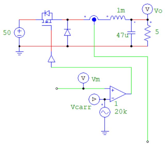 Figure 2. The electrical circuit part to be simulated inside PSIM -