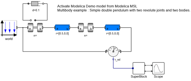 Load a mechanical system model that includes Modelica Multibody blocks.