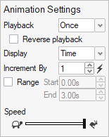 Display Change the speed of the animation. Increment By Increase the value in the counter to skip frames during playback. Click to restore the default values.