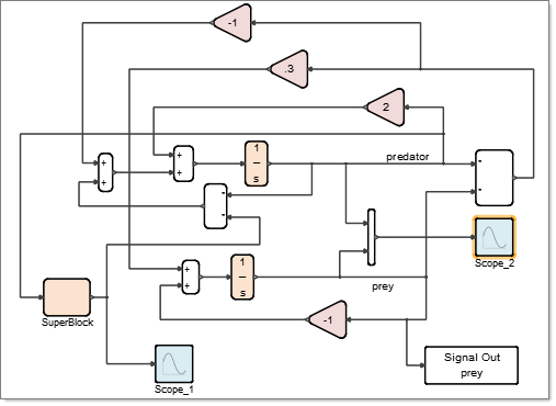 following example of a classic predator-prey model, Scope_2 on the right of the diagram is
