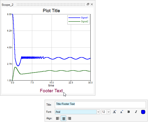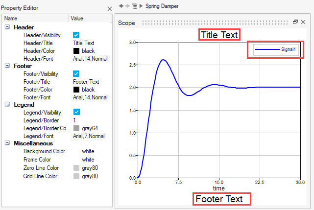 Use the Property Editor to modify the headers, footers, and display aspects of the scope window and legend.