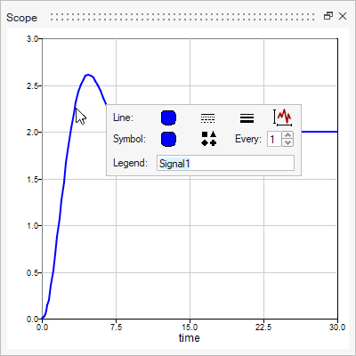 Double-click a scope block in the model to edit parameters that dictate the scope behavior.