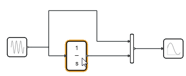7. Select the Integral block. Hold and drag your mouse up slightly to straighten the crooked link between the Integral and Mux blocks.