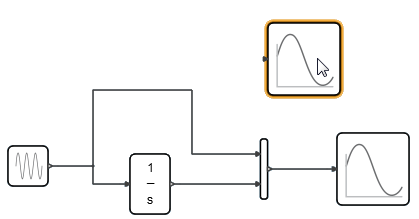 4. Alternatively, to duplicate a block, select the Scope block; press and hold the Ctrl key; drag the selected Scope block to an empty area in the diagram; release the mouse, and release the Ctrl key.