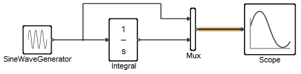 1. To better align the link between the Mux and Scope blocks, click and hold the Scope block, and then move the block down slightly until the link becomes a straight line.