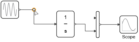 5. Hover over the output port of the SineWaveGenerator block until the cursor becomes a pointer-hand, then click: