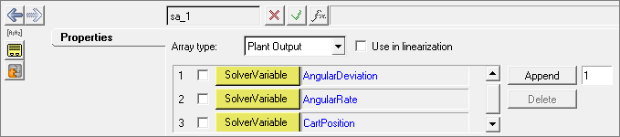 - Insert three additional solver variables: AngularDeviation, AngularRate and CartPosition.