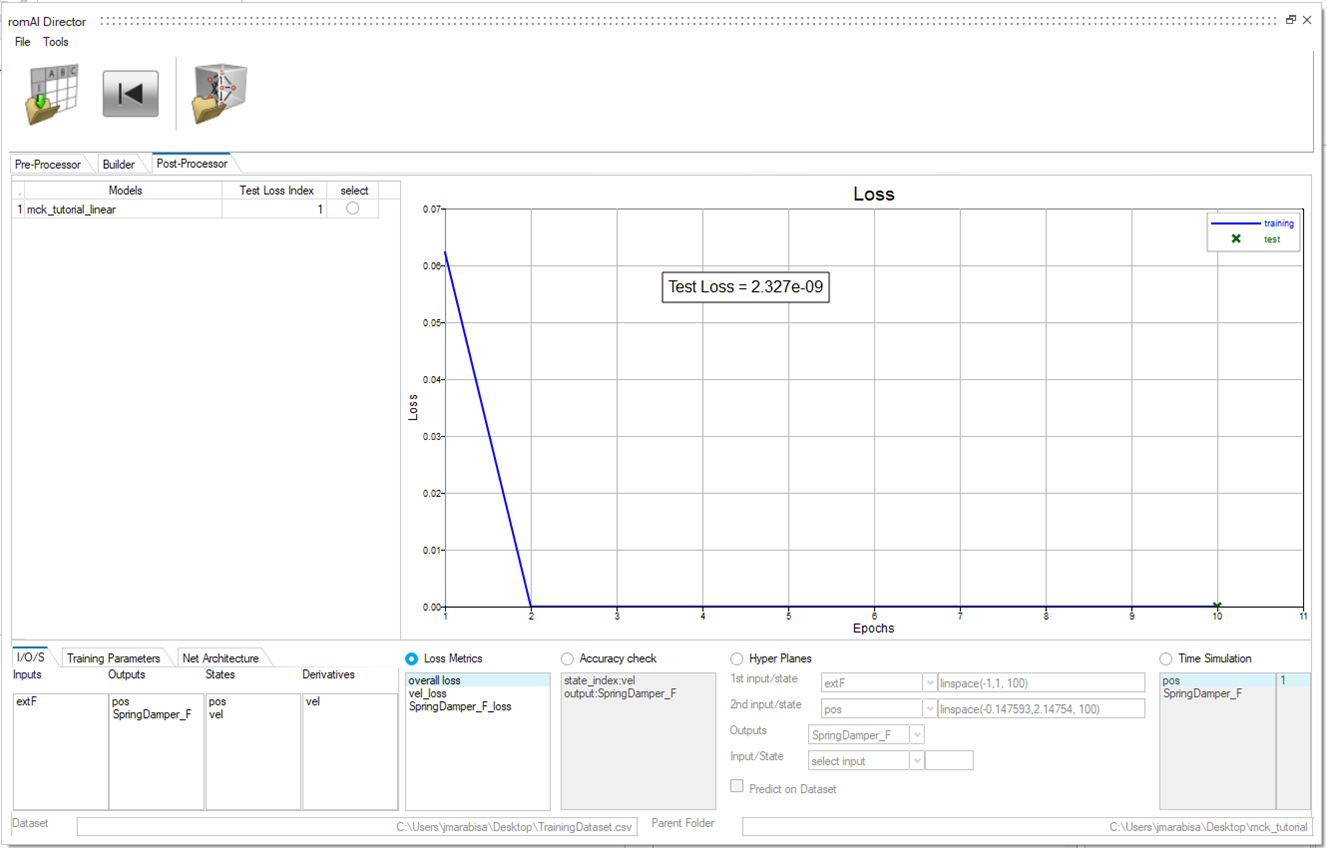 The Post-Processor tab allows for easy visualization and evaluation of the trained ROM. It opens automatically after model training.