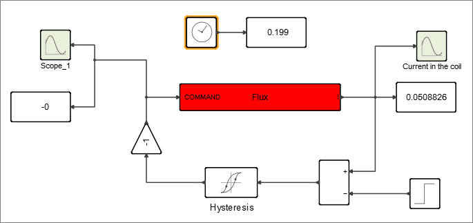 Figure 3. Diagram Assembled with Flux Block The Twin Activate model is complete and configured to supply a current to the Flux model of the plunger.