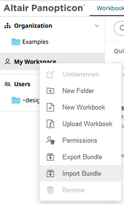 The final version of the Panopticon dashboard is available with the FMUinPano.exz bundle. To import it, right-click on My Workspace and select Import Bundle.