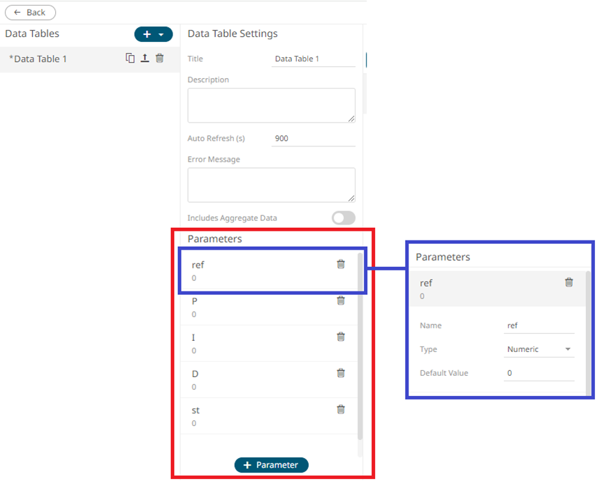 Besides the four parametrized variables mentioned before (Reference water level, P, I, and D), there will be one more, the final simulation time st. The variables are set as Numeric, and they can be freely named.