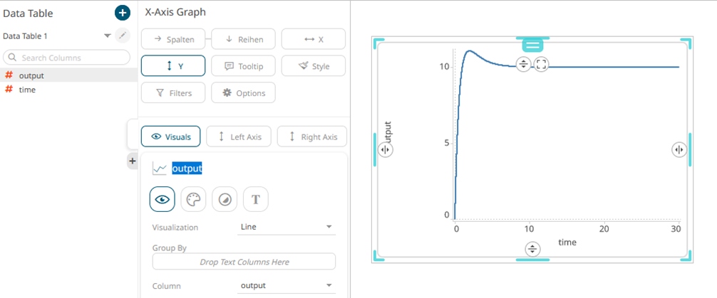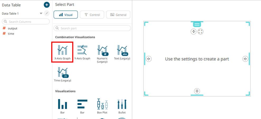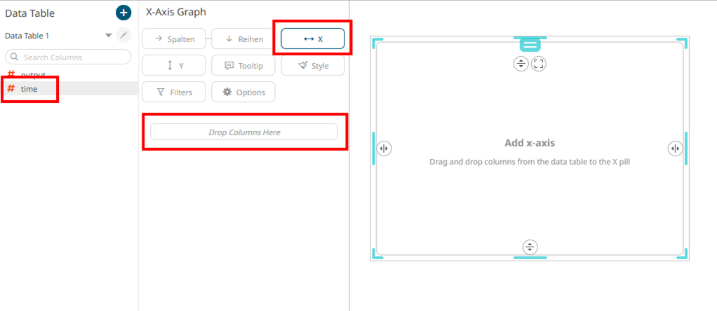 To add an x-axis graph, click and drag a rectangle on the dashboard and select