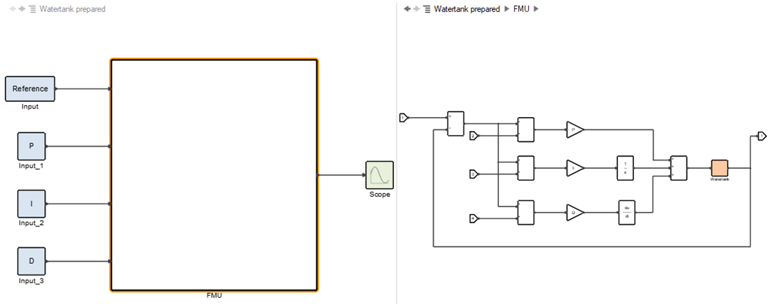 Watertank prepared.scm, FMU.fmu, FMUinPano.exz, PythonScript.py