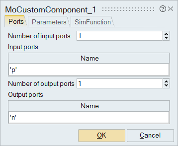 Important: Reviewing the Modelica MO code will help you understand what ports are required for the component.