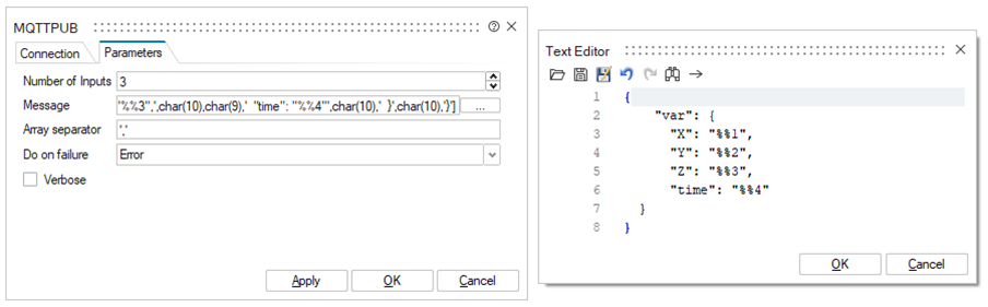 { "var": { "X": "%%1", "Y": "%%2", "Z": "%%3", "time": "%%4" } }