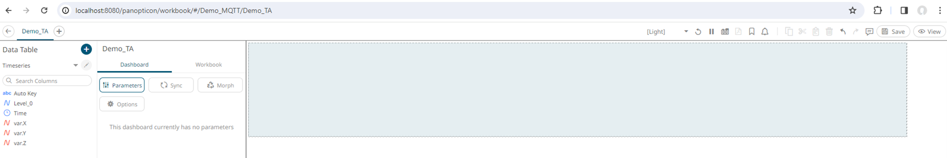 After installing Panopticon, and accessing it on the web, a new Workbook must be created to set the MQTT Connector to receive and process the data: