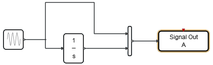 The SignalOut block is updated in the diagram. The new variable name appears, and the red activation port at the top of block is removed. The block now inherits activation. If an incoming signal is present, the SignalOut block is activated.