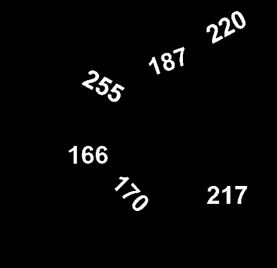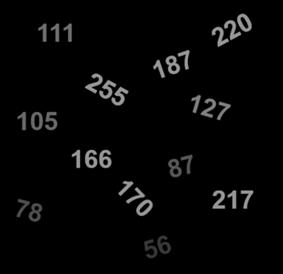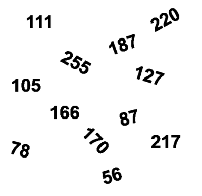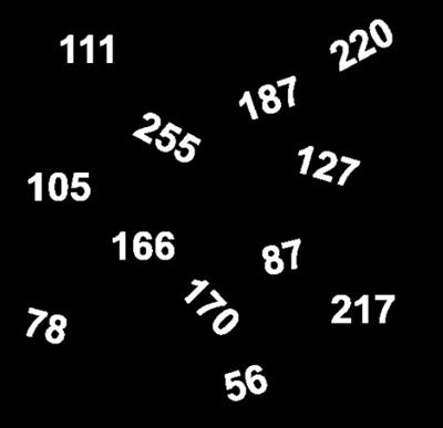 Apply a threshold to the same image as described above containing numbers with threshold equals to 127, which removes all numbers less than or equal to 127: