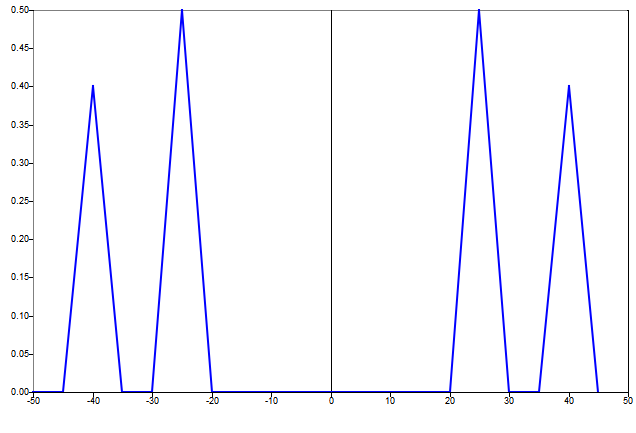 The frequency spacing is 5 Hz, so both components fall exactly on one of the frequency vector values.