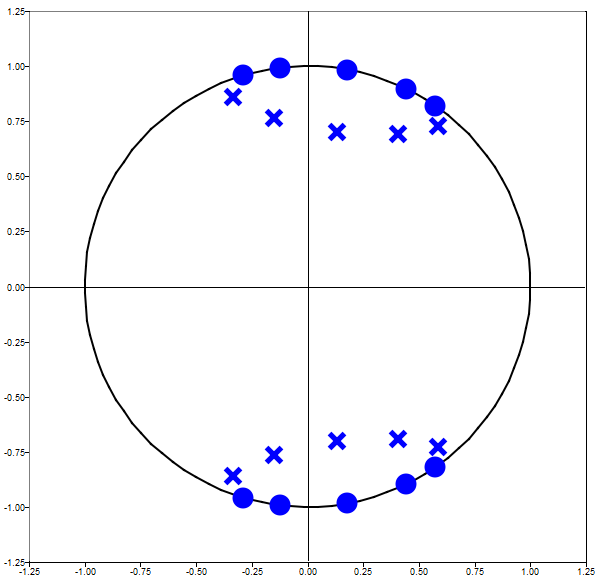 Plot zeros and poles of a discrete transfer function.