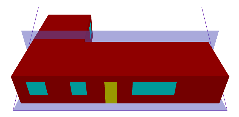glass patio doors, and glass windows. The building has a height of 3m.Figure 1. A 3D model of the building, consisting of planar polygons. Glass windows