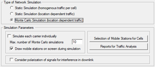 simulation.Note: This option is only available if Monte Carlo Simulation (location dependent traffic) check box is selected.