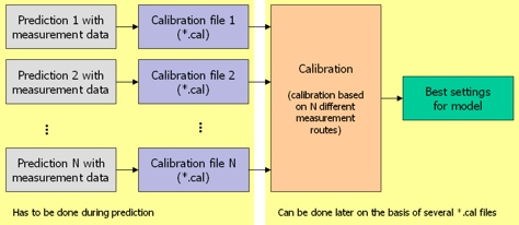 During the prediction, calibration files are written to the hard disk. The calibration is done afterwards based on the calibration files (.cal).