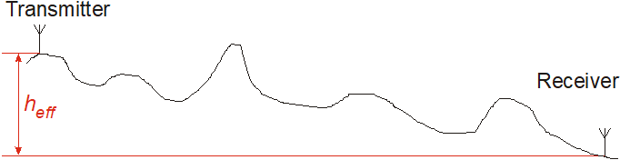 These formulas describe the wave propagation assuming a flat terrain because the terrain profile between the transmitter and the receiver is not taken into account. If there is, for example, a hill between the transmitter and receiver, the results will not be affected. In addition, local effects around the receiver are neglected (for example, reflection or shadowing).