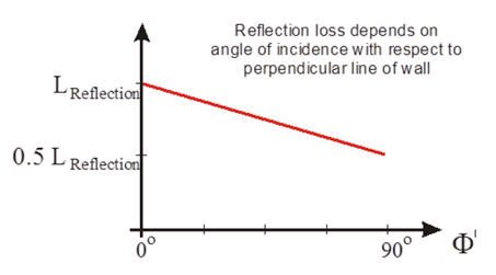 Figure 2. The reflection loss depends on the angle of incidence with respect to the perpendicular line of wall.