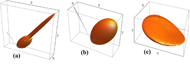 Figure 4. Scattering lobe for (a) low, (b) moderate, and (c) high surface roughness profiles.