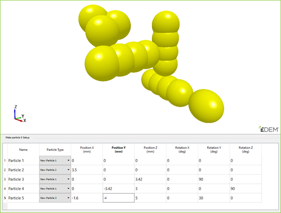 A Meta-Particle is a collection of individual Multi-Sphere or Sphero-Cylinder particles bonded together using EDEM’s Bonding V2 contact model.