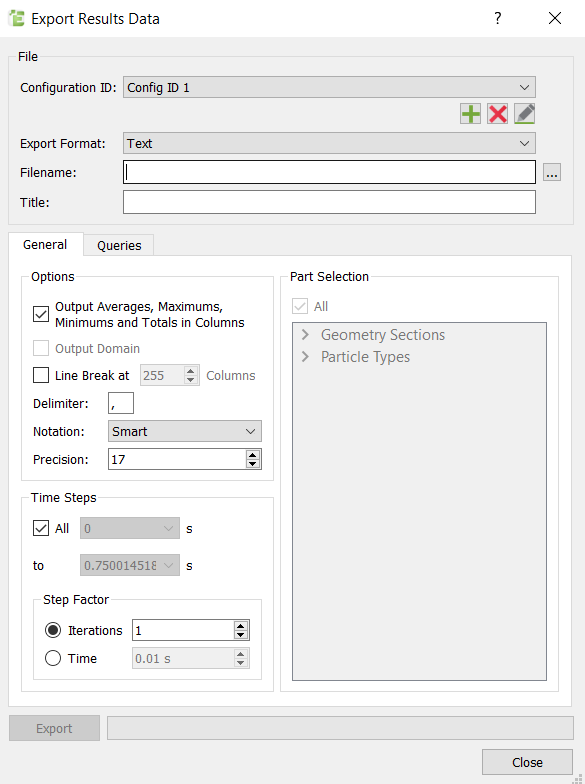 You can also use queries to export the results data. A configuration can contain multiple queries, each of which defines one data attribute. Queries define what information is exported.