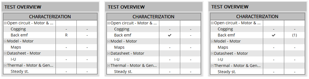 « R » : Test is running « ν » : Test is already performed «(1)» One test is saved