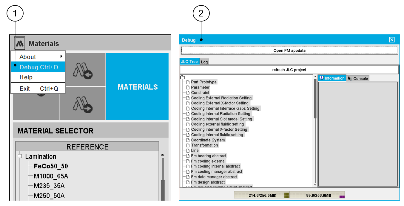 | 1 | Access to “Debug mode” from the top menu of “Materials” application. |